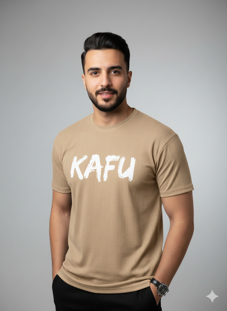 تيشيرت رجالي من كفو (بيج) | تصميم عصري وشعار بارز